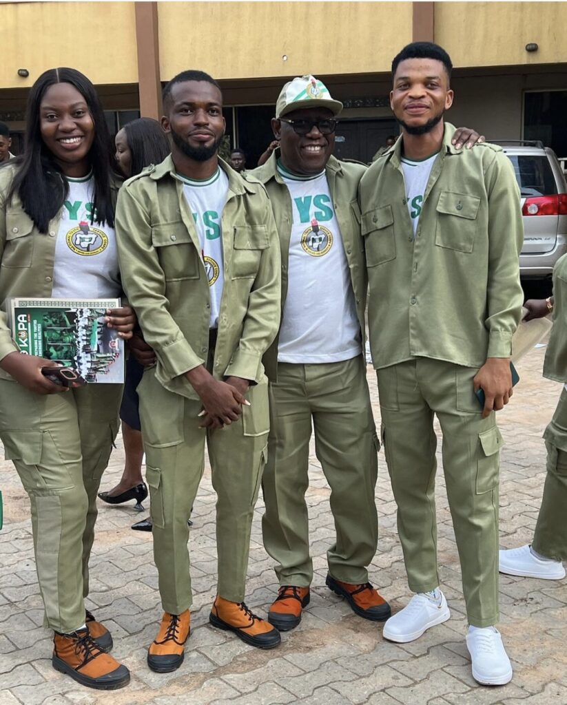 The Producer shares pictures where he poses with his fellow corpers to celebrate this joyous occasion.