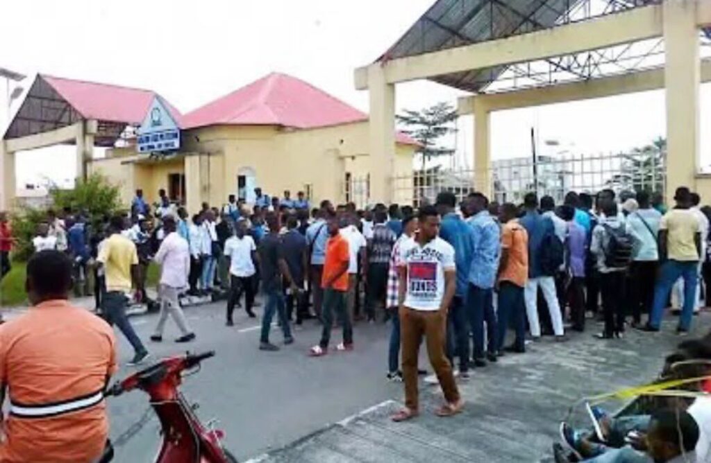 Students of Akwa Ibom State Polytechnic, Ikot Osurua, staged a protest on Monday over rising criminal attacks that have claimed the lives of five students in the past year.