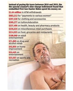 The three felonies levelled against President Biden’s 53-year-old son — who faces a maximum penalty of 17 years in prison if convicted on all counts include one count of tax evasion for his 2018 personal taxes and two counts of filing a false return for his 2018 personal taxes and on a corporate income tax return for his company Owasco, PC.